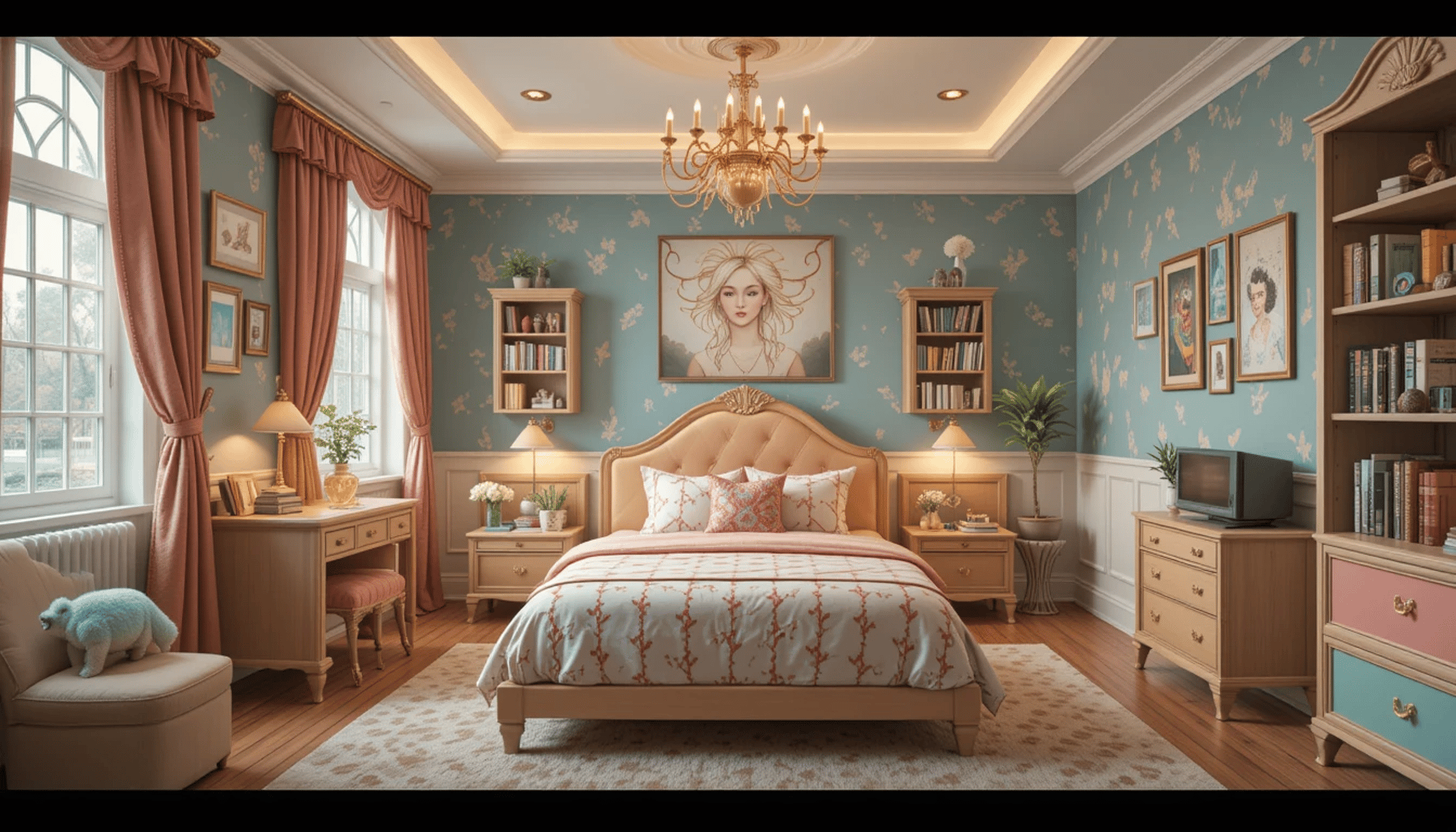 o Wooden Furniture: Opt for solid wood beds, desks, and chairs to create a rustic yet elegant vibe. Reclaimed wood pieces add character and sustainability.