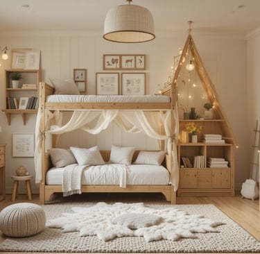 Create a cozy and charming farmhouse-style kids' room for your little ones! 🏡✨ Discover creative ideas tailored for Indian homes, blending rustic wooden furniture, neutral palettes, and playful decor with cultural touches like handcrafted toys and block-printed textiles. Perfect for designing a timeless space that grows with your child! #FarmhouseKidsRoom #IndianHomeDecor #KidsRoomDesign"