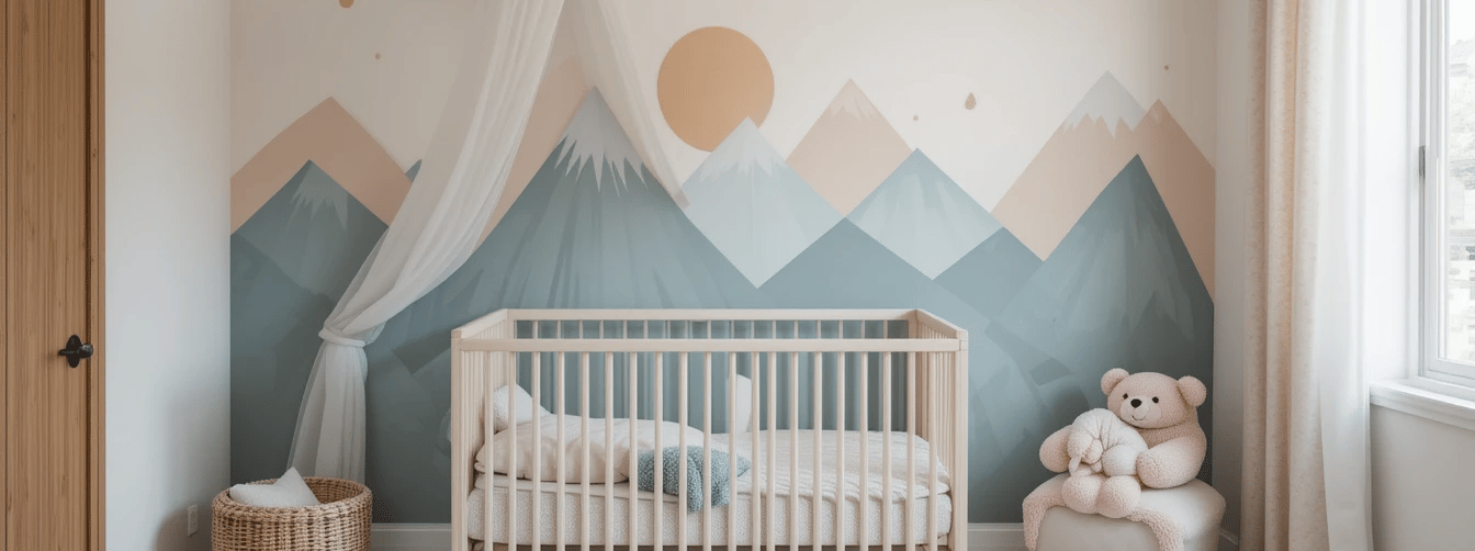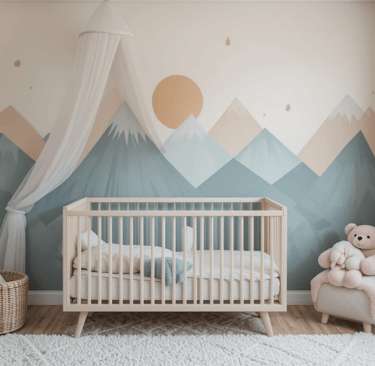 DIY Wall Murals: Paint simple patterns like mountains or clouds using neutral tones to add personality to the room without overwhelming it.