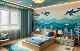 You can choose blue for the walls and white for furniture, wardrobes, and curtains for the best look and feel.