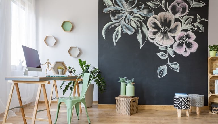 A chalkboard wall is both fun and practical. It lets kids write, draw, and exercise their creativity by writing directly on the walls.