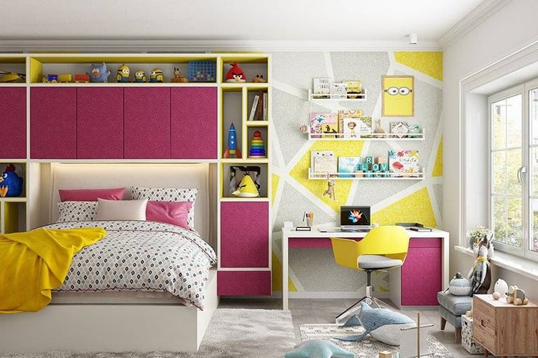 If you are looking for the best and most vibrant colour combinations for kids’ rooms, yellow and magenta are the best options for you.