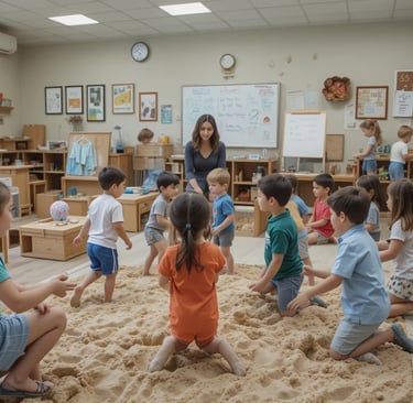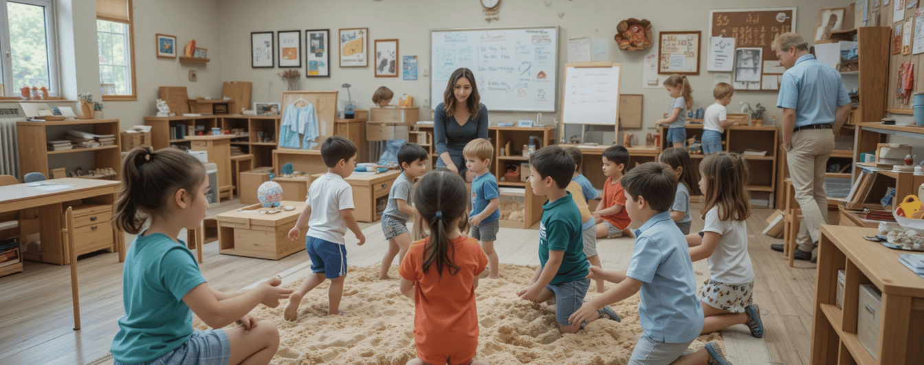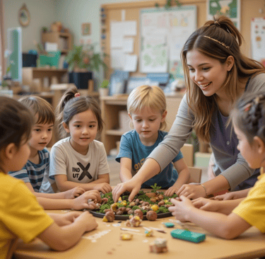 Children explore concepts through interactive games, puzzles, storytelling, and sensory activities.